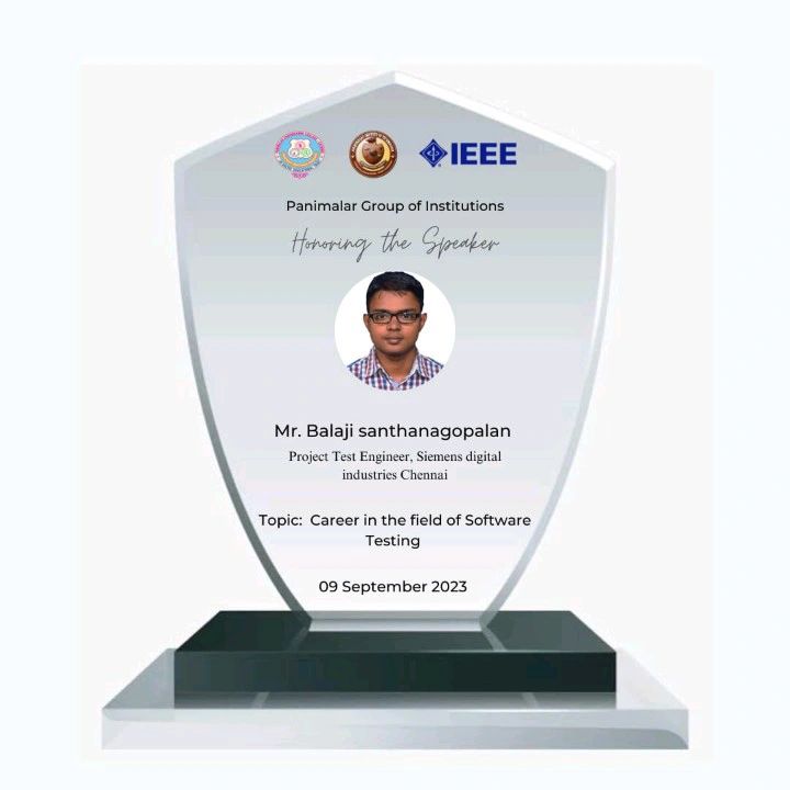 During 2023, I got an opportunity to deliver a webinar about “Career In the Field of Software Testing” for college students from IEEE SB, Panimalar Group Of Institutions. I felt really happy to share my knowledge with engineering students and provided awareness about various kinds of roles and jobs around Software Testing. I have also received minor feedback to improve my response to the query posted.